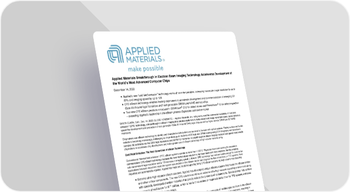 Applied Materials Breakthrough in Electron Beam Imaging Technology Accelerates Development of the World’s Most Advanced Computer Chips
