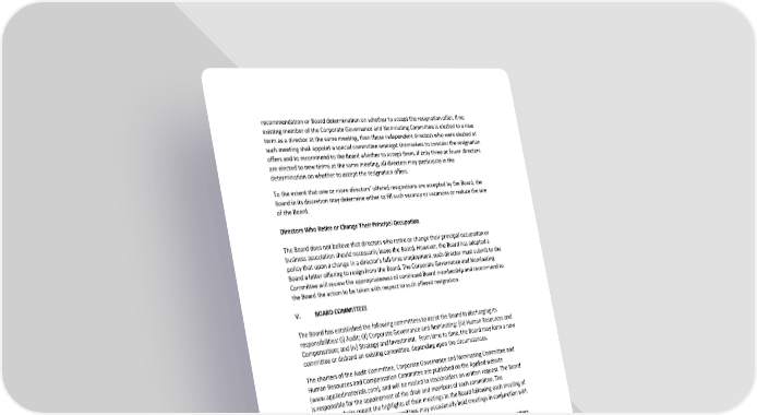 recommendation or Board determination on whether to accept the resignation offer. If no existing member of the Corporate Governance and Nominating Committee is elected to a new term as a director at the same meeting, then those independent directors who were elected at such meeting shall appoint a special committee amongst themselves to consider the resignation offers and to recommend to the Board whether to accept them. If only three or fewer directors are elected to new terms at the same meeting, all directors may participate in the determination on whether to accept the resignation offers. To the extent that one or more directors’ offered resignations are accepted by the Board, the Board in its discretion may determine either to fill such vacancy or vacancies or reduce the size of the Board. Directors Who Retire or Change Their Principal Occupation The Board does not believe that directors who retire or change their principal occupation or business association should necessarily leave the Board. However, the Board has adopted a policy that upon a change in a director’s full-time employment, such director must submit to the Board a letter offering to resign from the Board. The Corporate Governance and Nominating Committee will review the appropriateness of continued Board membership and recommend to the Board the action to be taken with respect to such offered resignation. V. BOARD COMMITTEES The Board has established the following committees to assist the Board in discharging its responsibilities: (i) Audit; (ii) Corporate Governance and Nominating; (iii) Human Resources and Compensation; and (iv) Strategy and Investment. From time to time, the Board may form a new committee or disband an existing committee, depending upon the circumstances. The charters of the Audit Committee, Corporate Governance and Nominating Committee and Human Resources and Compensation Committee are published on the Applied website (www.appliedmaterials.com), and will be mailed to stockholders on written request. The Board is responsible for the appointment of the chair and members of each committee. The committee chairs report the highlights of their meetings to the Board following each meeting of the respective committees. The committees may occasionally hold meetings in conjunction with meetings of the Board. The number, content, frequency, length and agenda of committee meetings and other matters of committee governance will be determined by each committee in light of the authority delegated by the Board to the committee, as set forth in its committee charter. The chair of each committee is responsible for developing, with input from relevant Company managers, the committee’s agenda and objectives, the committee’s charter, if any, as approved by the Board, and legal, regulatory, accounting or governance principles applicable to that committee’s function. Sufficient time to consider the agenda items will be provided. Materials related to agenda items will be sent to committee members sufficiently in advance of the meeting to allow the members to prepare for discussion of the items at the meeting. Corporate Governance Guidelines 3.11.2022 5