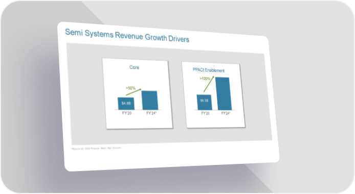 Semi Systems Revenue Growth Drivers Core PPACtEnablement >100% >50% $6.5B $4.8B $6.5B FY’20 FY’24* FY’20 FY’24* *Represents 2024 Financial Model High Scenario