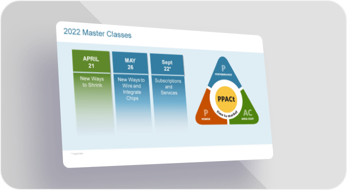 2022 Master Classes APRIL MAY Sept 21 26 22* New Ways New Ways to Subscriptions to Shrink Wire and and Integrate Services Chips * Target date