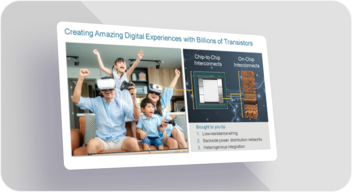 Creating Amazing Digital Experiences with Billions of Transistors Chip-to-Chip On-Chip Interconnects Interconnects Brought to you by: 1. Low-resistance wiring 2. Backside power distribution networks 3. Heterogenous integration